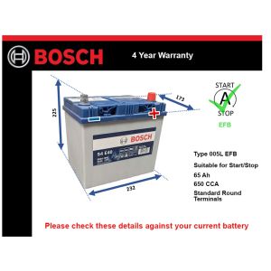 • Bosch EFB (Enhanced Flooded Battery) technology is specially tailored to the demands of passenger cars with Stop / Start systems.