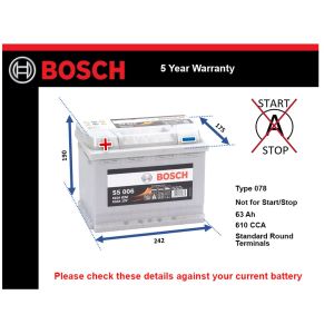 Title Bosch S5006 Battery - 12V - 63Ah - 610CCA