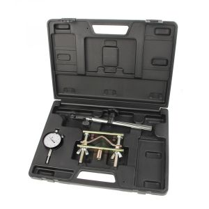 . Measuring stand with three-point clamp for mounting on the shock absorber . Ideal for determining the side and height of the brake disc . Cross-arm with joint and fine adjustment . Includes dial gauge and micrometer for determining the wear limit