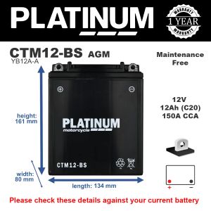 You're reviewing: Platinum CTM12-BS AGM Motorcycle Battery