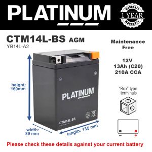 You're reviewing: Platinum CTM14L-BS AGM Motorcycle Battery
