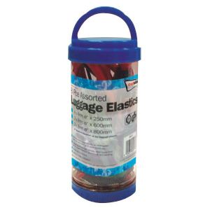 This tub of mixed GS TUV Approved luggage elastics are ideal for securing luggage/goods on roof/ladder bars, roof racks, trailers and open boots etc. Streetwize luggage elastics have high tensile steel hooks that are vinyl coated to prevent scratching and bending. Supplied by Streetwize Accessories, the UK's leading supplier of automotive and leisure accessories. We have over 40 years experience in supplying handy accessories for your car, van, motorhome, caravan and home!